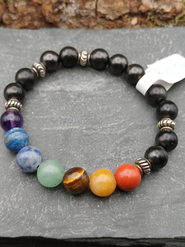 La shungite permet de densifier notre énergie vitale afin de diminuer l'impact des influences extérieures. Grâce à son champ d'ondes scalaire naturel le bracelet n'a pas besoin d'être purifié.