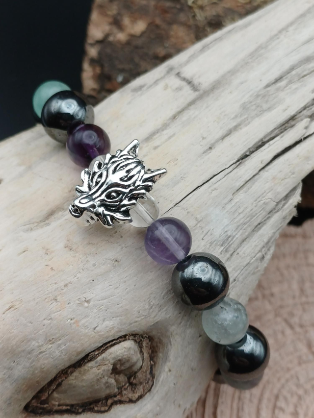 Perles 8/10mm/2 cristal 6mm/tête dragon metal
