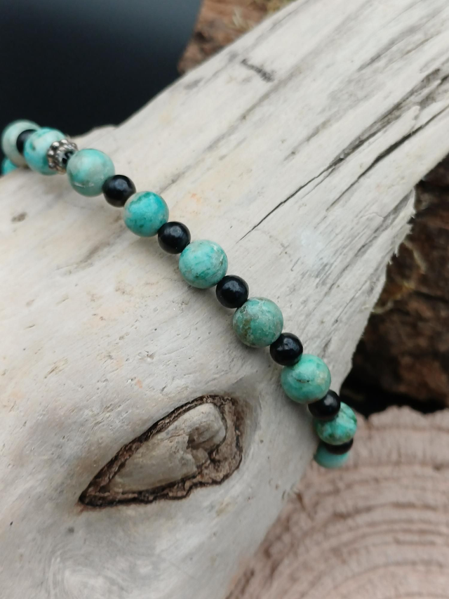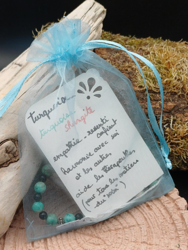 En résonance avec le chakra secondaire turquoise qui est en lien avec l'empathie et se situe sur le haut de la poitrine.