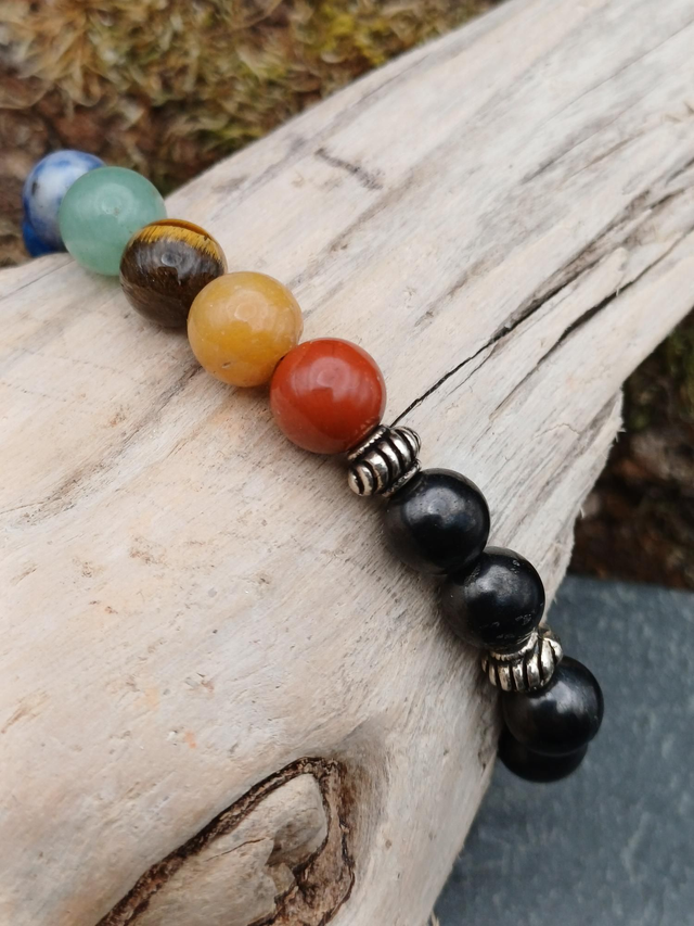 La shungite permet de densifier notre énergie vitale afin de diminuer l'impact des influences extérieures. Grâce à son champ d'ondes scalaire naturel le bracelet n'a pas besoin d'être purifié.